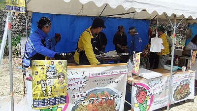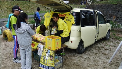 吹屋歴史街道ウルトラマラニックが、4月21日(日)に開催され、吹屋小学校跡前の特設テントには、備中高梁食援隊(事務局・高梁商工会議所)が参加し、備中高梁ご当地グルメ「インディアントマト焼そば」を販売PRいたしました。また今年なでしこリーグで戦っているFC吉備国際大学シャルムの遠藤コーチと選手達も参加、グッズ販売とシャルムのPRを行いました。