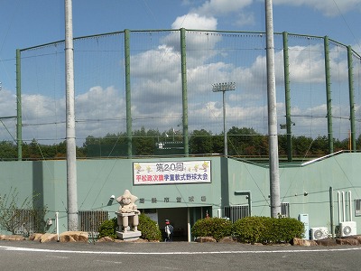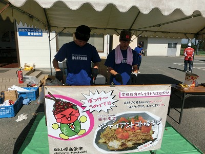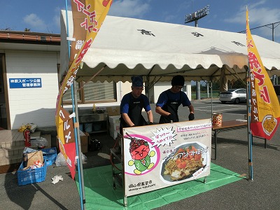 平松政次旗学童軟式野球大会が10月12日(土)、高梁市営球場(高梁市松原町・神原スポーツ公園)で開催され、県内外から約30チームが参加されました。管理棟前には備中高梁ご当地グルメ「インディアントマト焼そば」を出展・販売・PRいたしました。