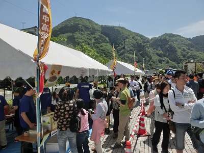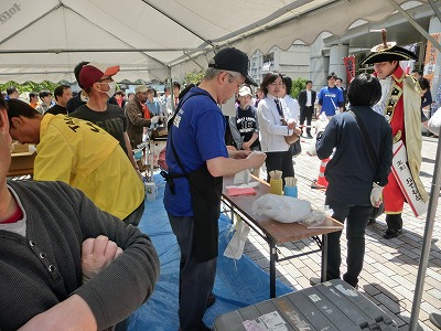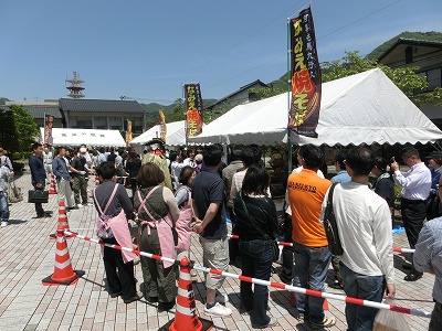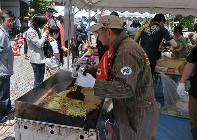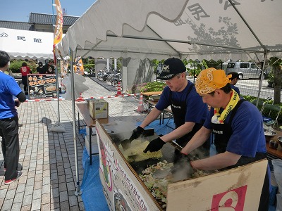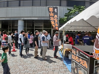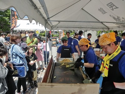 そして12時からは特設テントで、なみえ焼そば(浪江焼麺大国)、津山ホルモンうどん(津山ホルモンうどん研究会)、インディアントマト焼そば(備中高梁食援隊)が参加し、ご当地グルメをPR・販売いたしました。
