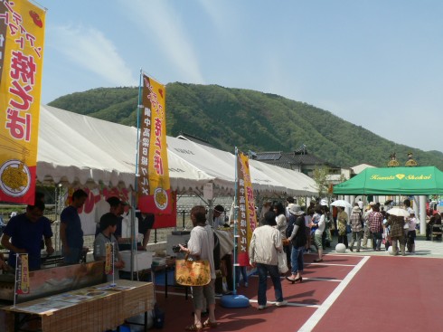 高梁商工会議所落合町支部では、4月29日(日)、落合ふれあい公園(高梁市落合町阿部)で初の「落合ふれあい公園まつり」を開催いたしました。午前9時30分にオープニングが行われ、三宅善行支部長の挨拶の後、来賓の近藤高梁市長、高梁商工会議所西副会頭らから祝辞がありました。会場では、ミニSL走行乗車、ソフトグライダー飛ばし大会、大声コンテスト、ミンティァダンスショーなどが行われたほかフードコーナーには、備中高梁食援隊も参加し、「インディアントマト焼そば」を出展・販売しPRを行いました。